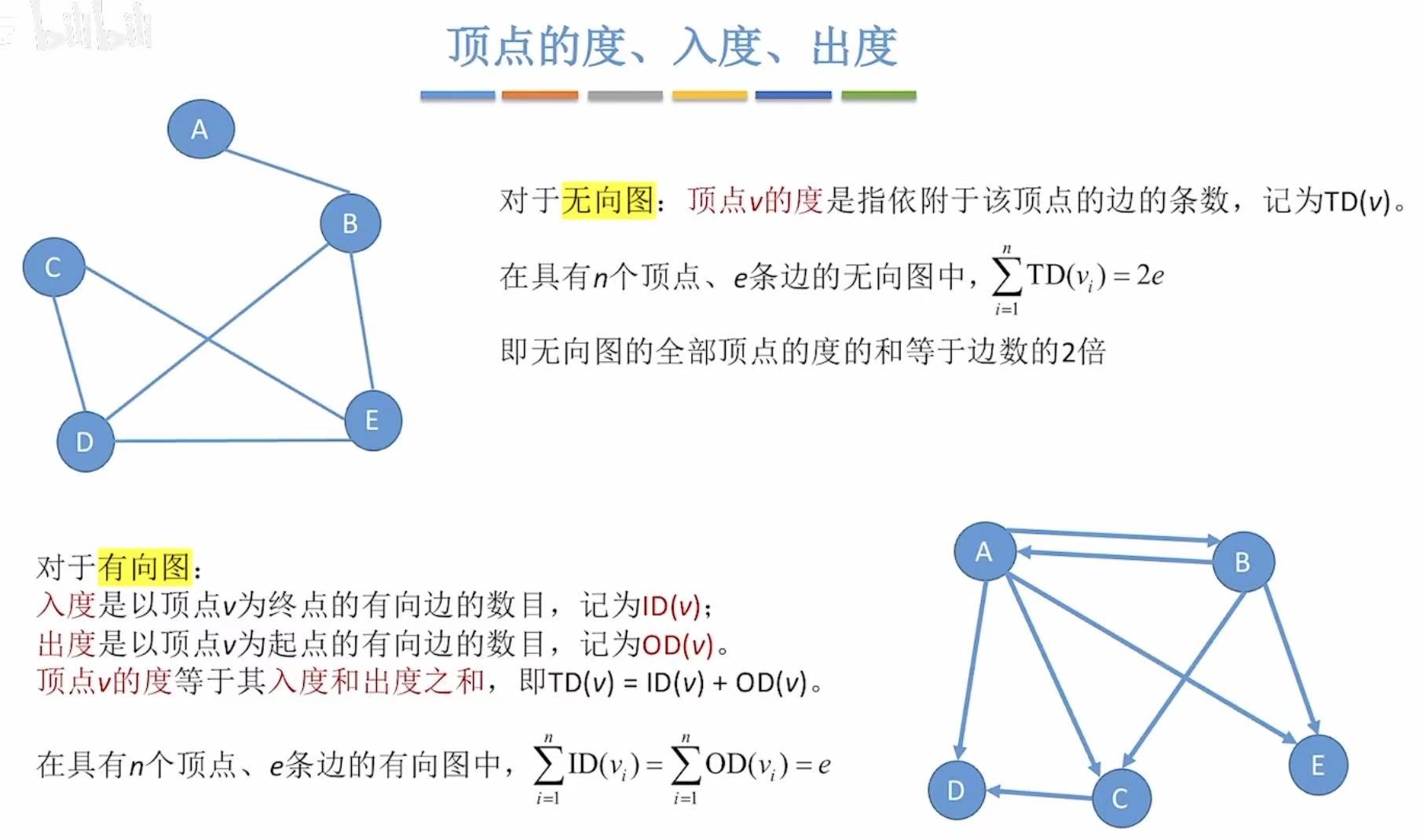 - 有向图 :因为是有方向的,所以又根据箭头和非箭头的两边分为入度和出度。