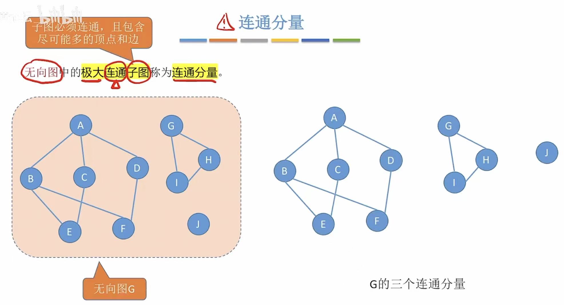 - 但是这三者之间不是相互连通的,所以这三个是独立的连通分量。