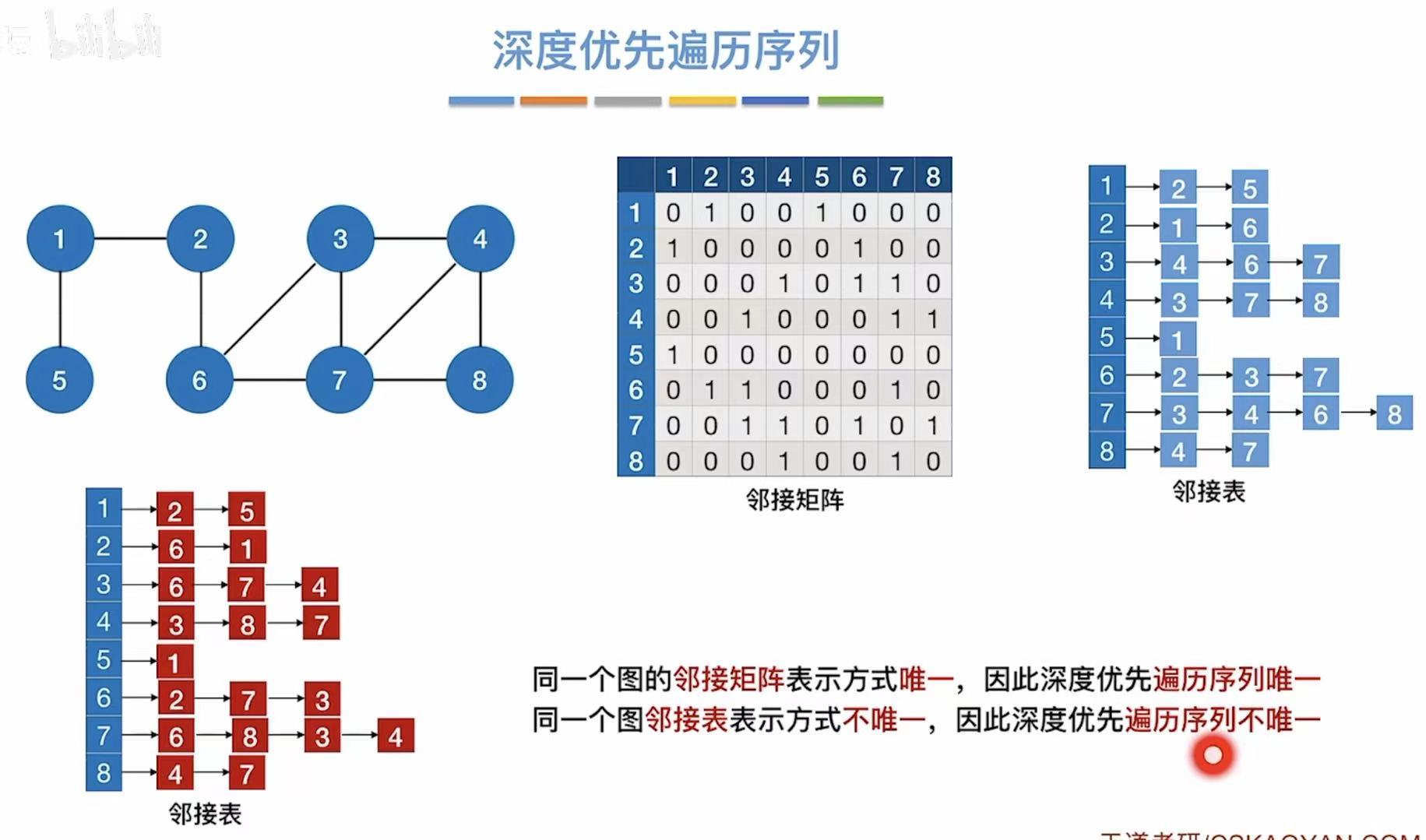 深度优先遍历:就是一个顶点和谁相邻,就先把一边的遍历到底,再遍历另外一边。