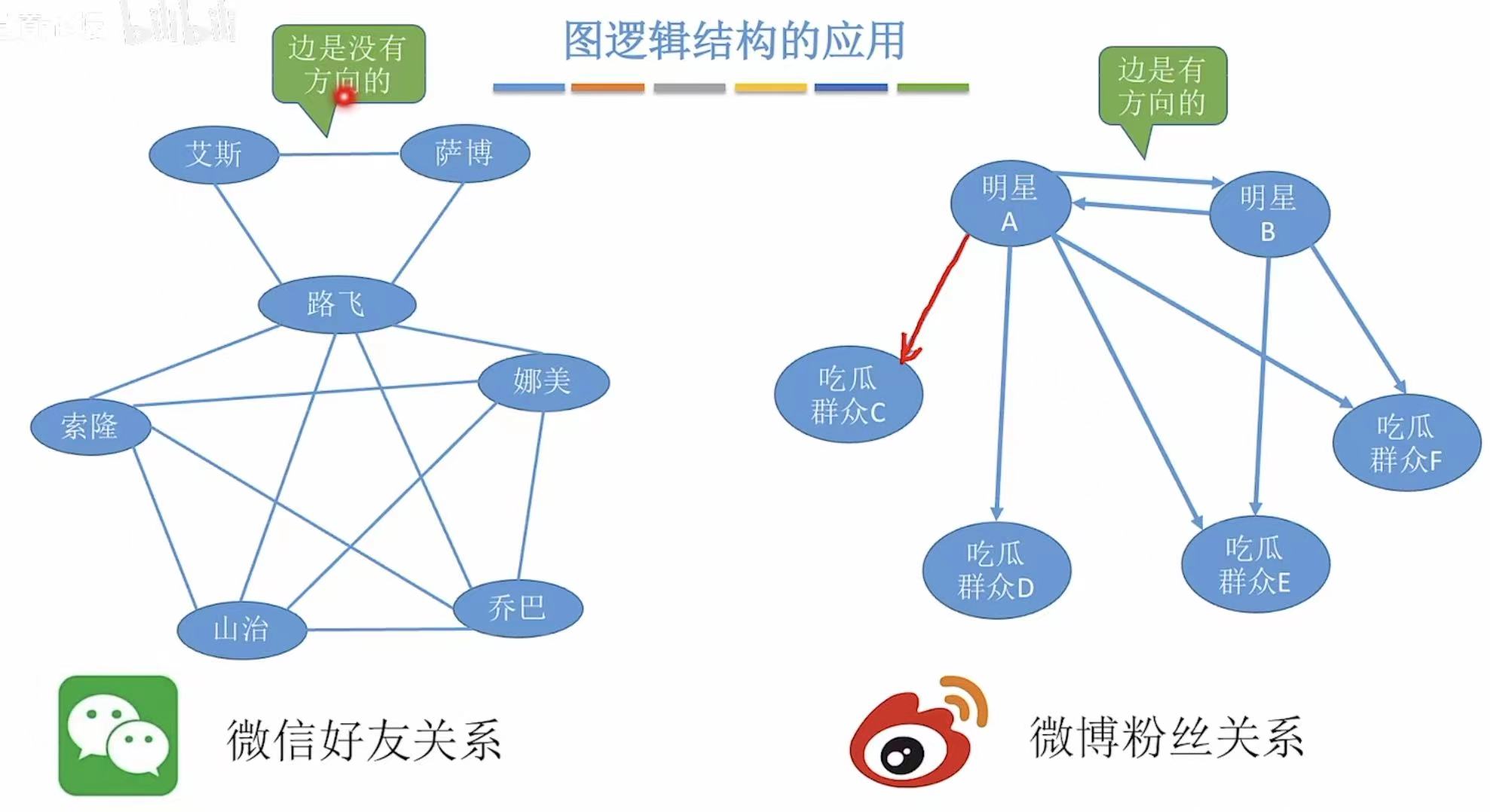 - 第二个图的边是有箭头的,这就是有向图 ,因为每个个体之间的指向是有区别的。