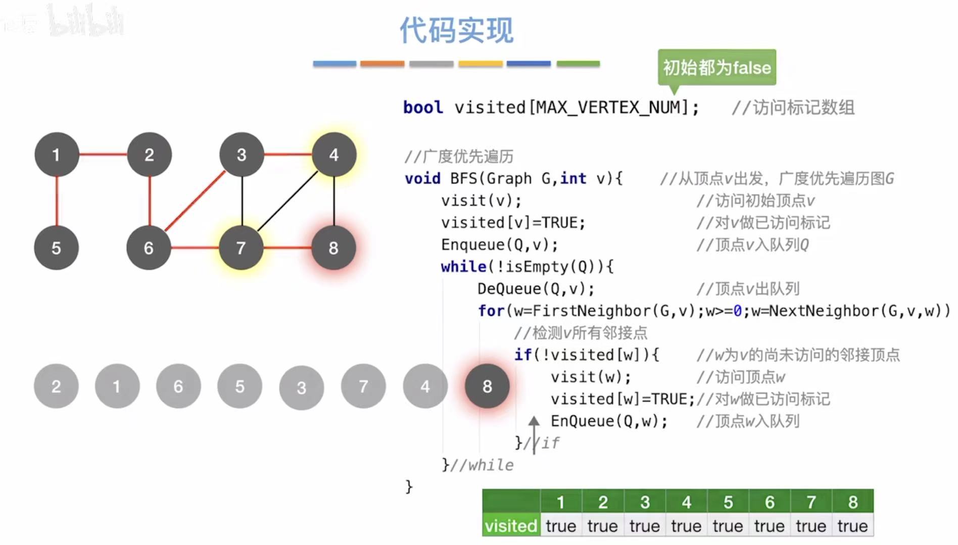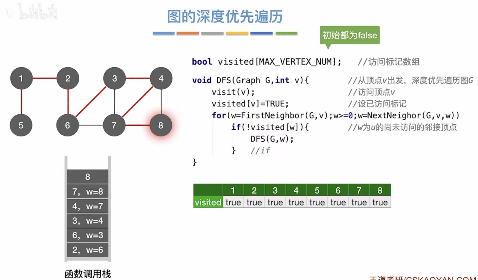 visited[v] = FALSE; // 所有顶点初始状态为未访问