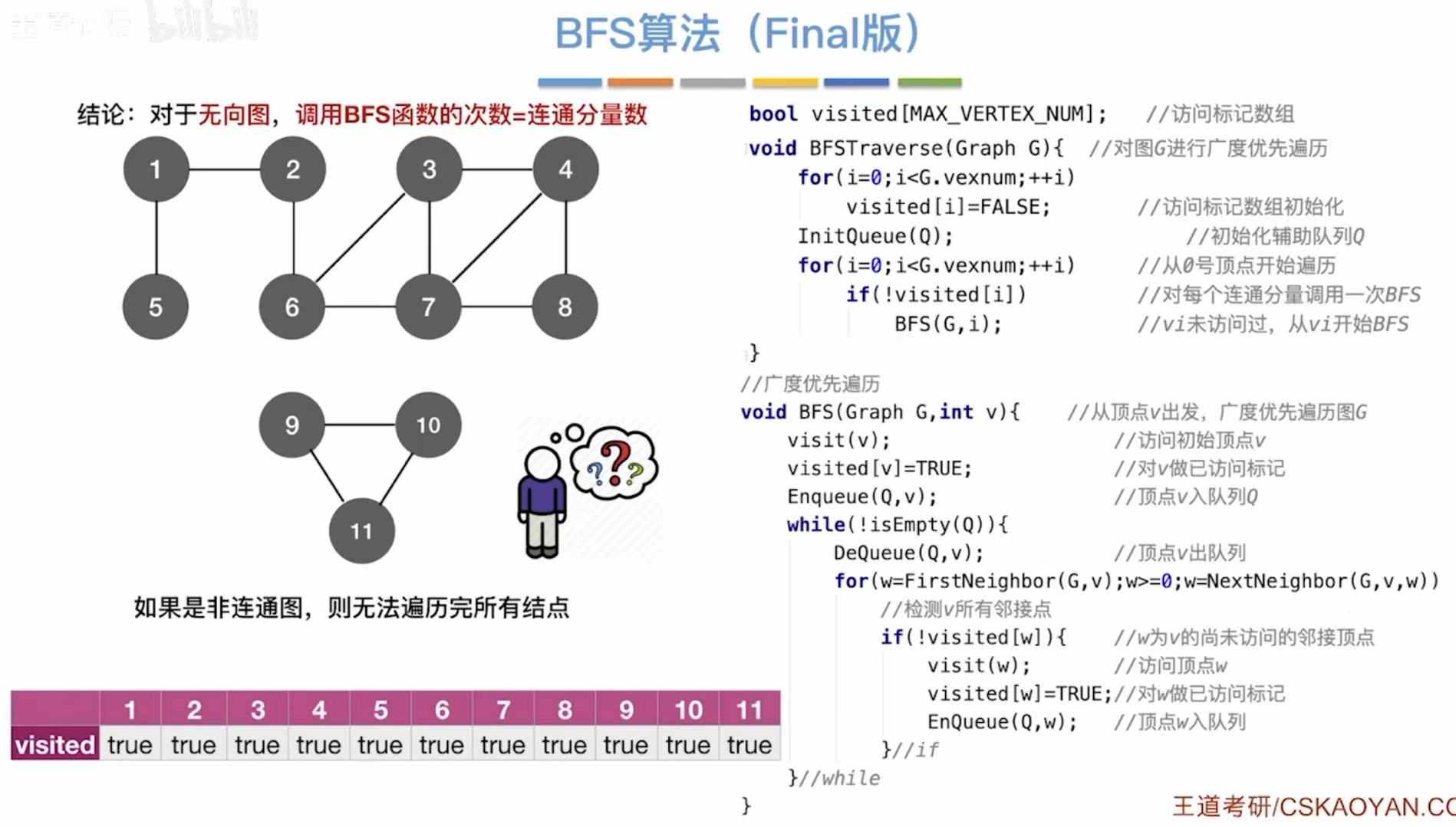 如果是非连通图,就没办法全部遍历到,所以我们就需要扩充我们的结点表,让没遍历到的结点进行遍历。