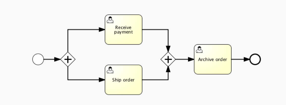 网关也可以建模流程中的并行执行。在流程模型中引入并行的最简单的网关,就是并行网关(parallel gateway) 。