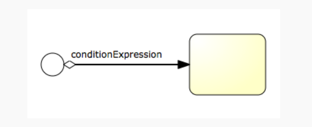 条件顺序流用起点带有小菱形的顺序流表示。在顺序流旁显示条件表达式。