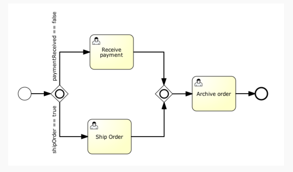 - 合并:所有到达并行网关的并行执行都会在网关处等待,直到每一条入口顺序流都到达了有个执行。然后流程经过该合并网关继续。