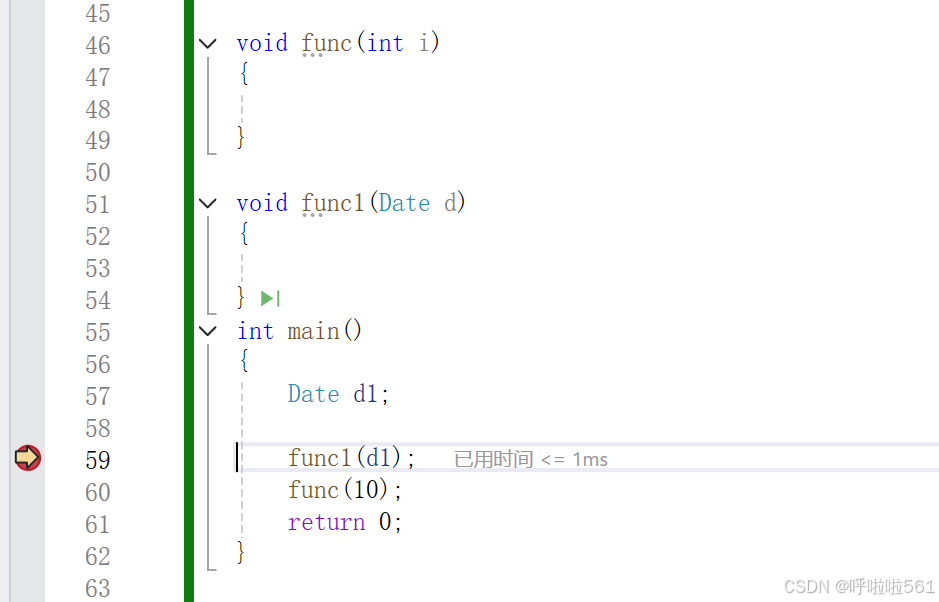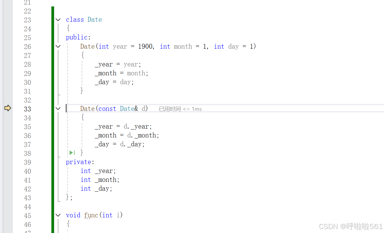 Date d5 = d1;//拷贝构造,也可以复制到VS中对比两者赋值运算符的颜色