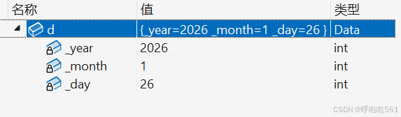 Data d1(2026, 1, 26);// 调用带参的构造函数