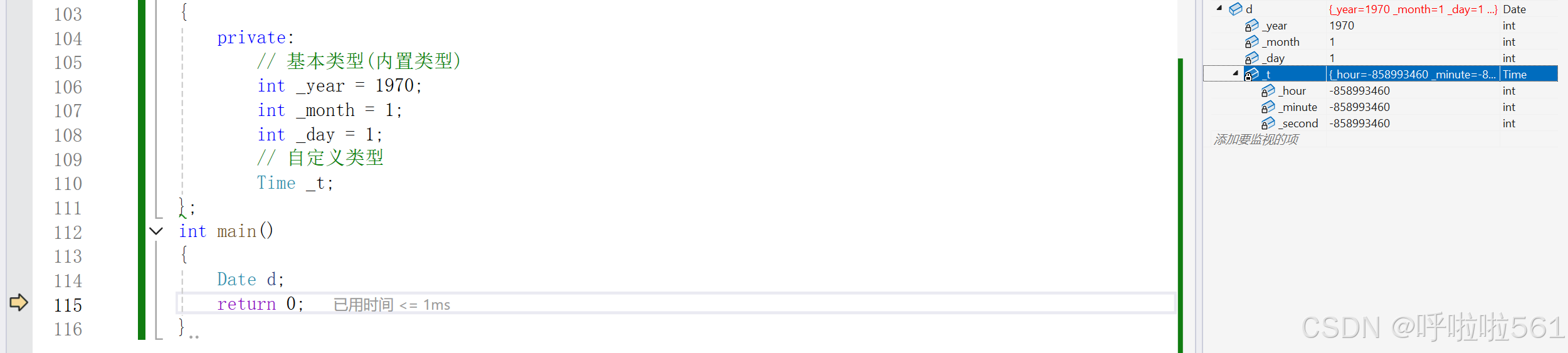2.如果成员变量是自定义类型,则调用它自己的默认构造函数