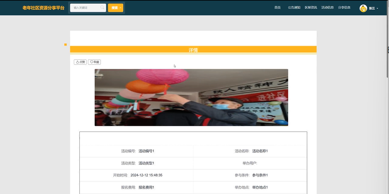 活动信息:用户可以查看即将举行的各类活动信息,包括文娱活动、健身课程、志愿服务等,促进老年人积极参与社区活动,丰富他们的社交生活。