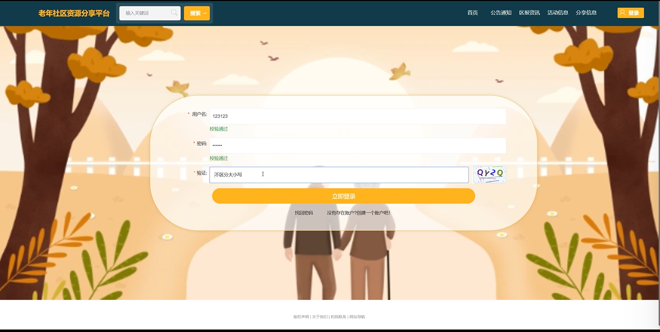 在系统的设计过程中,充分考虑了老年用户的需求和使用习惯,确保界面友好、操作简便。系统提供的功能模块,如登录注册、公告通知、活动信息、分享信息以及个人中心等,极大地丰富了老年用户的社区生活,增强了他们的参与感和归属感。同时,管理员后台的设计,使得社区管理者能够高效地管理用户、活动和分享信息,确保平台的正常运行和信息的准确性。