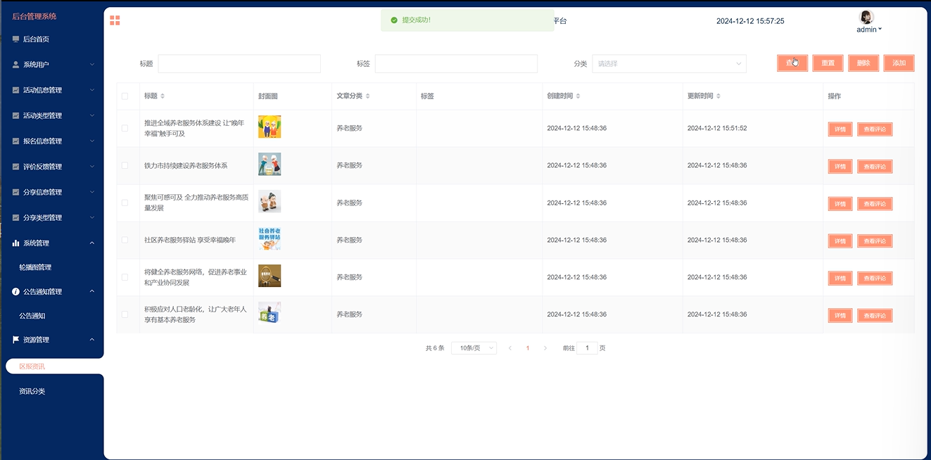 活动信息管理:管理员可以发布、编辑和删除各类活动信息,确保活动信息的及时更新和准确性,方便老年用户参与。
