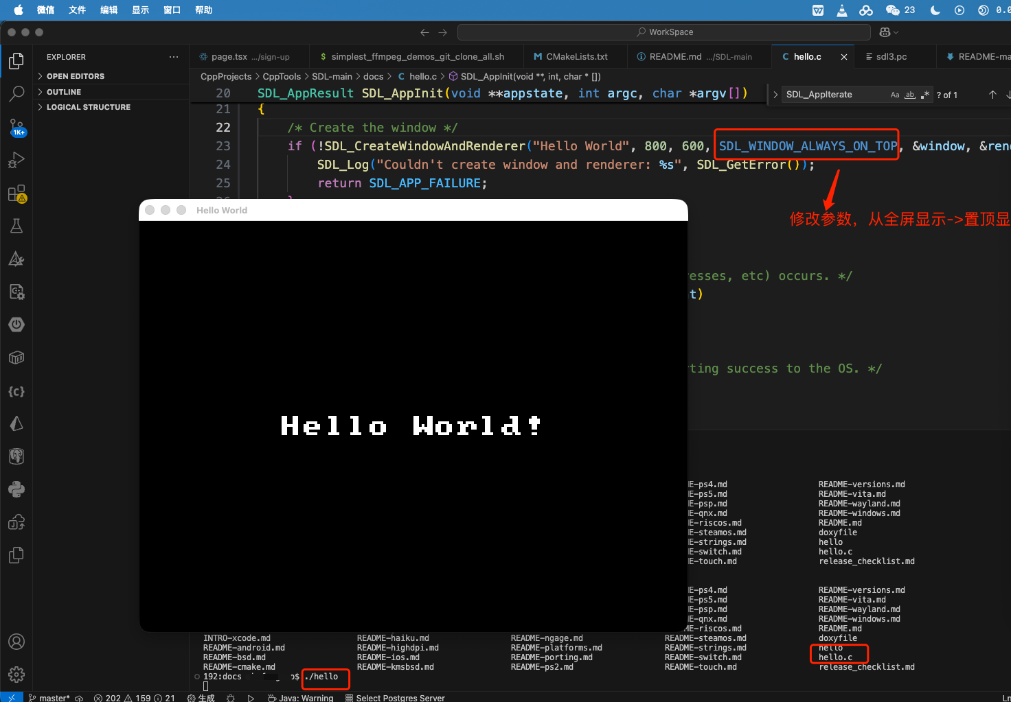 MacOS下源码安装SDL3并运行hello.c示例程序