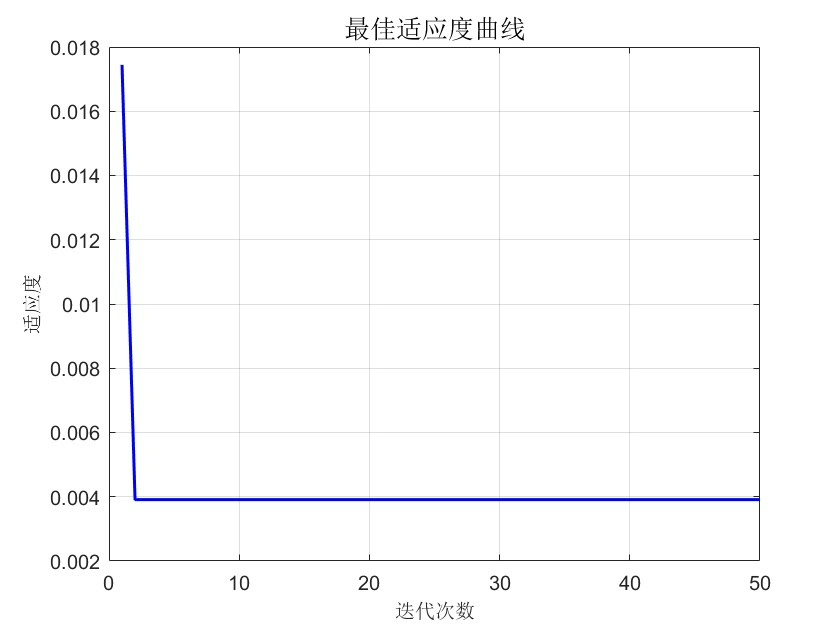 PSO优化环节是重头戏。这里设置20个粒子迭代50次,搜索SVM的C和gamma参数: