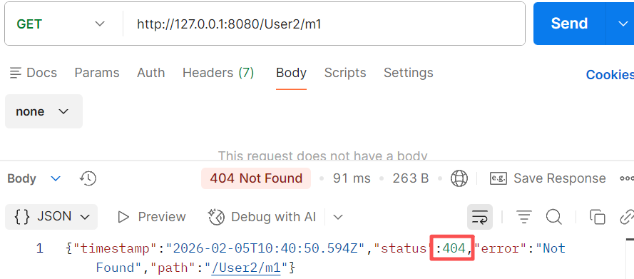 java//获取Session @RequestMapping("/getSession2") public String getSession2(HttpSession session){ //从session中获取登录用户的信息 String userName = (String)session.getAttribute("userName"); return "登录用户为 : "+userName; }使用 postman 发送请求http://127.0.0.1:8080/request/getSession2