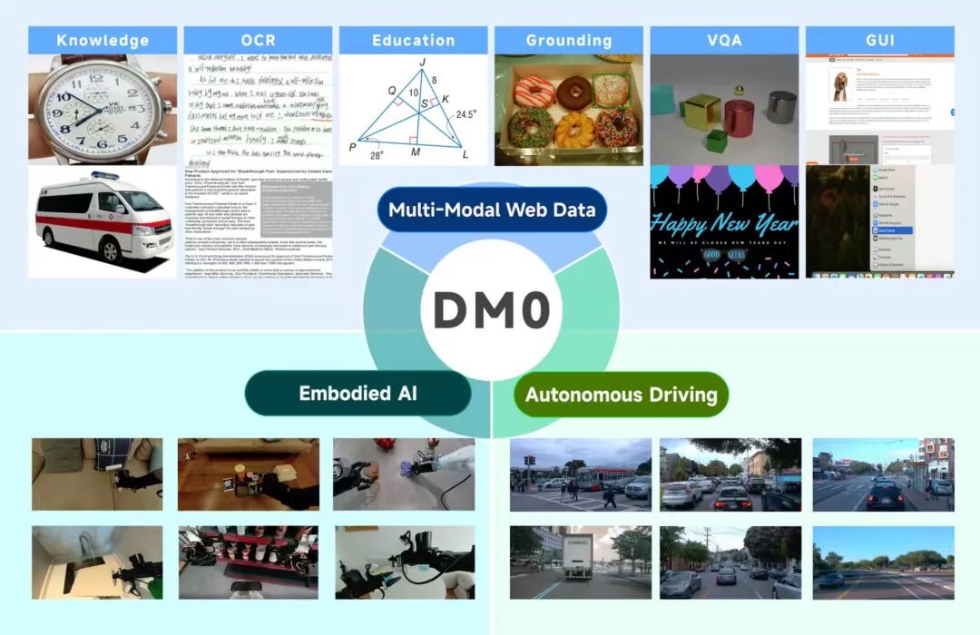 DM0 把数据范围扩展到人类生活全场景,包括三类数据: