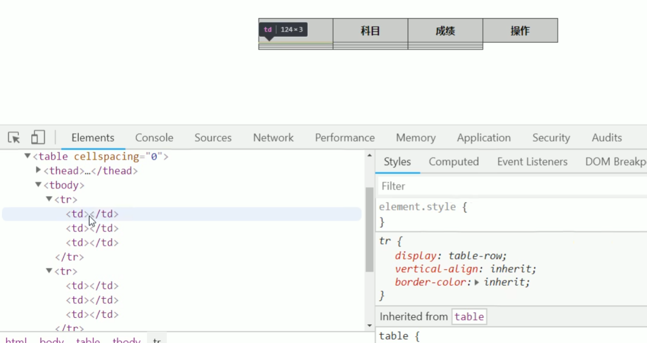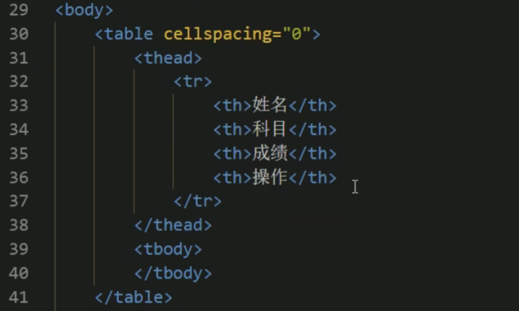 (为了添加数据以及动态生成表格,将上图处表头信息删除,以便后续添加)
