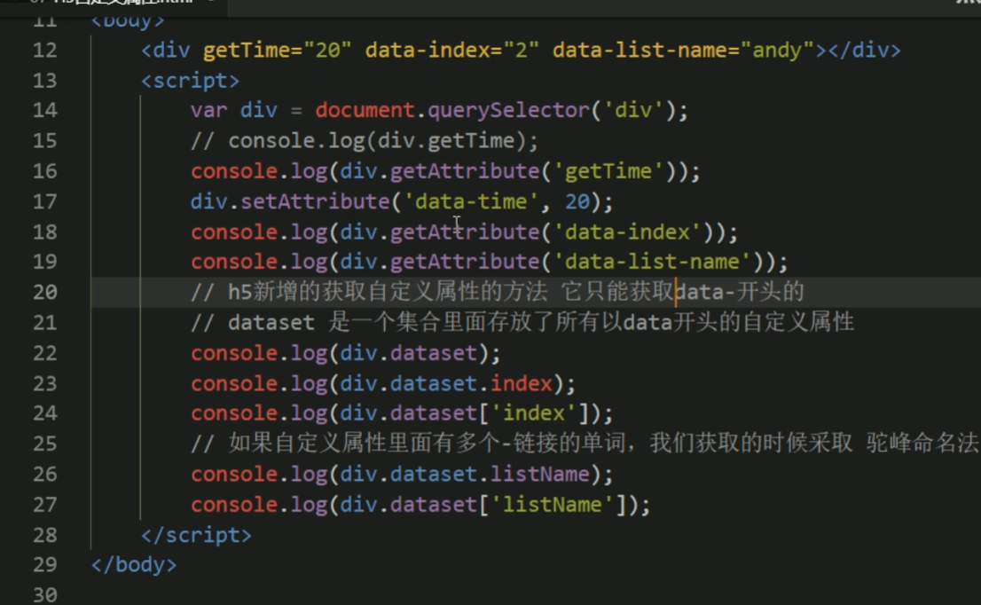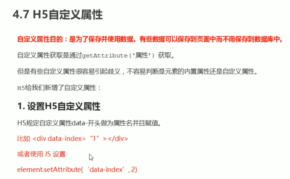H5自定义属性 注意