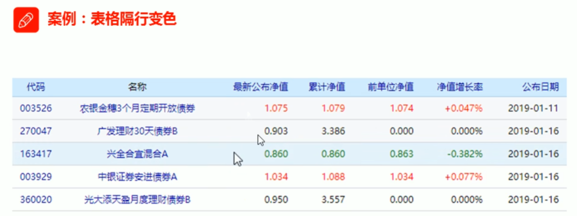 表格隔行变色效果