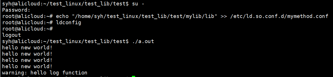 3)将自己的库所在的路径,添加到系统的环境变量LD_LIBRARY_PATH中(临时的)