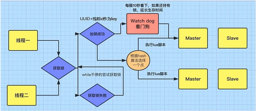 如果redis使用的是 主从复制的模式,有主节点和从节点,设置锁时 只能给主节点设置