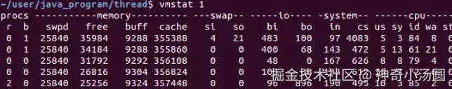 Linux系统下可以使用vmstat命令来查看上下文切换的次数, 其中cs列就是指上下文切换的数目(一般情况下, 空闲系统的上下文切换每秒大概在1500以下)