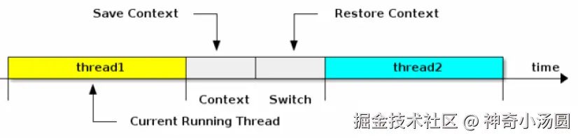 线程上下文是指某一时间点 CPU 寄存器和程序计数器的内容,CPU通过时间片分配算法来循环执行任务(线程),因为时间片非常短,所以CPU通过不停地切换线程执行。