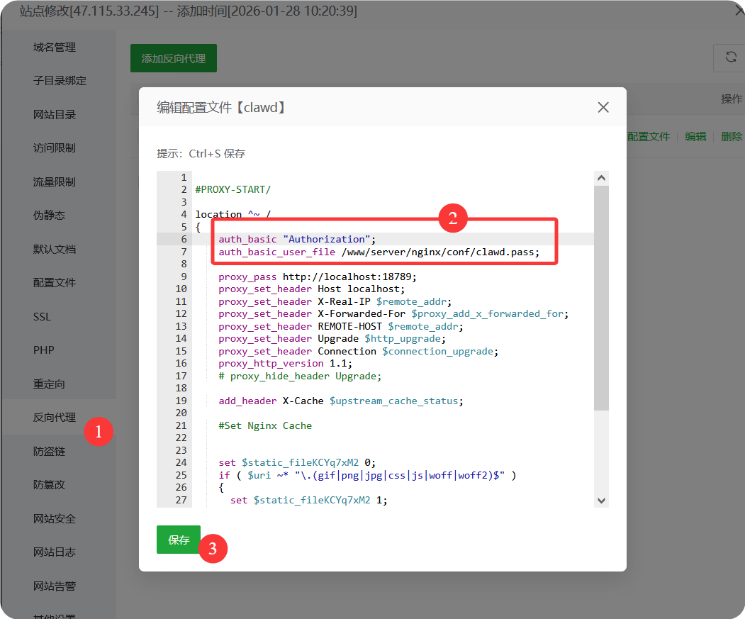 auth_basic_user_file /www/server/nginx/conf/clawd.pass;