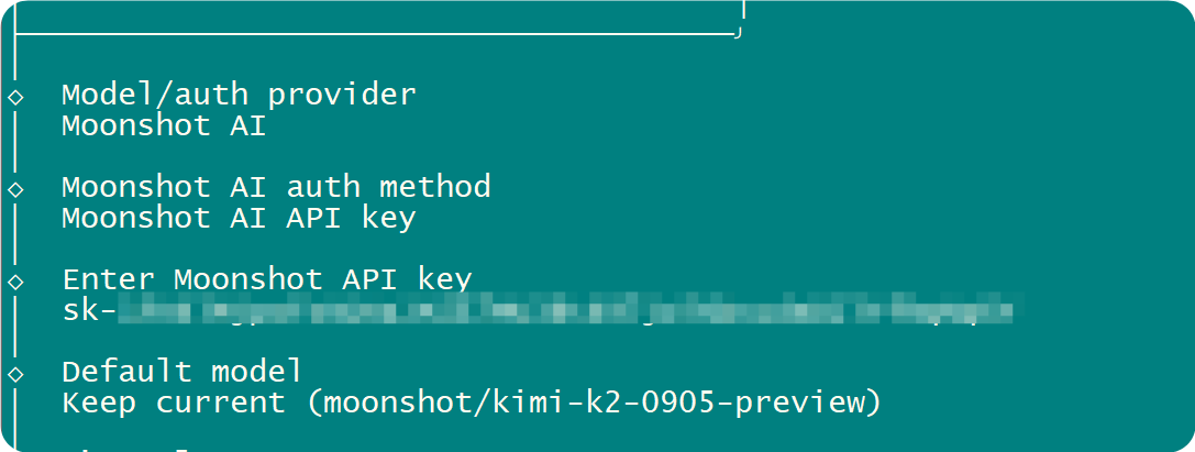 再粘贴自己的Moonshot API Key,默认模型选择Keep current。