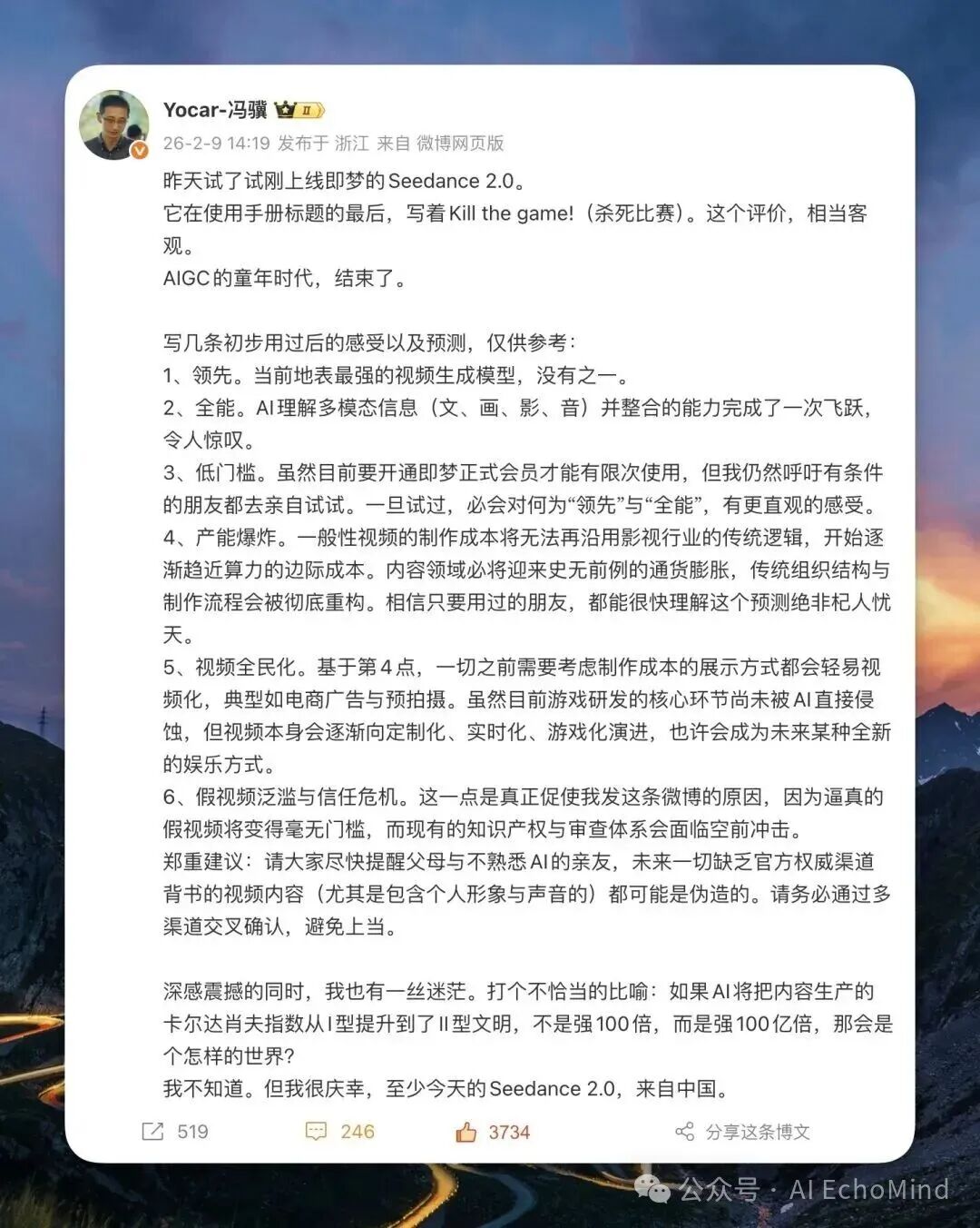 抖音、B 站、微博全线刷屏,甚至连《黑神话:悟空》的制作人冯骥都感叹:"AIGC 的童年时代,结束了。"
