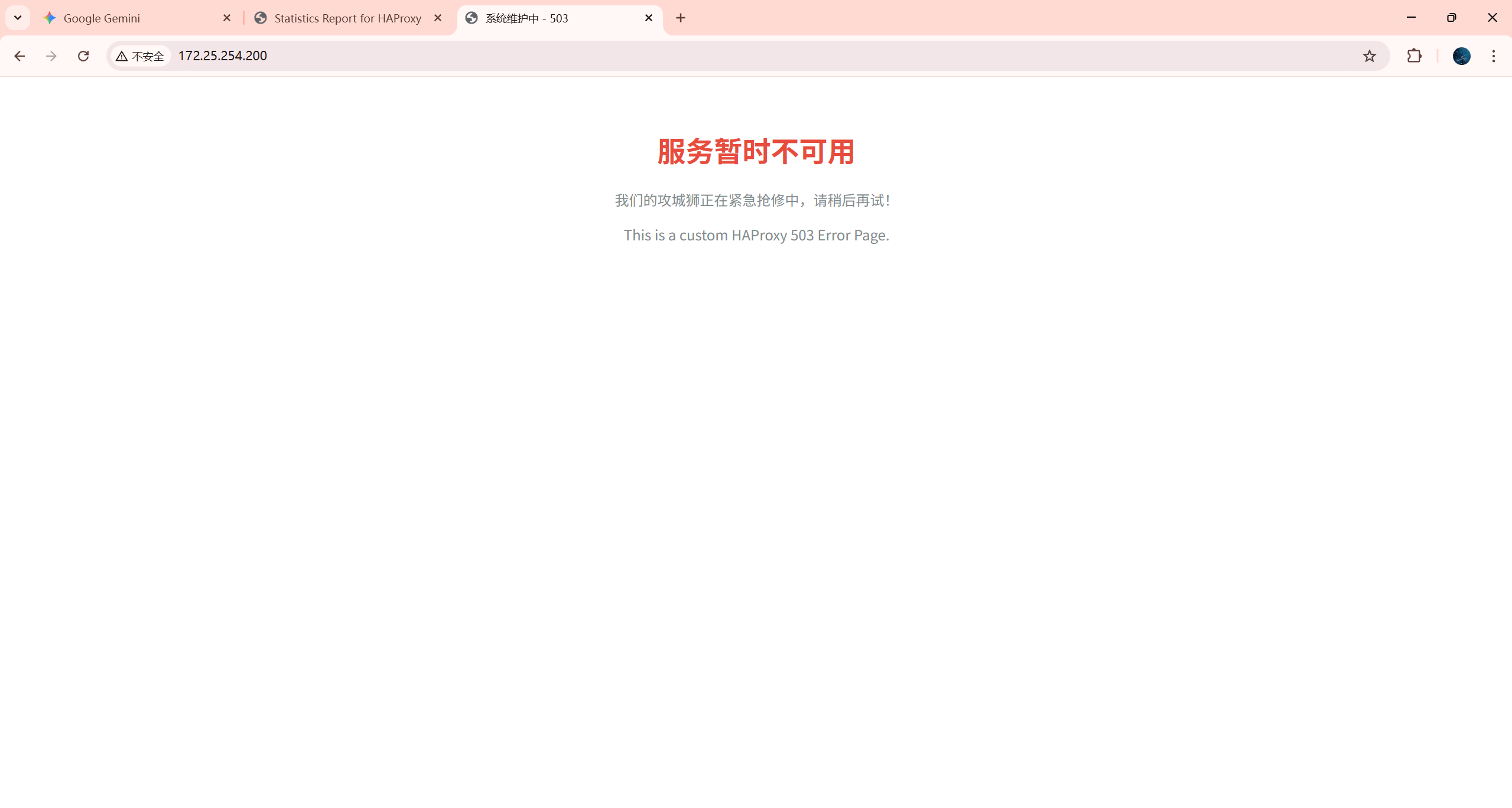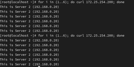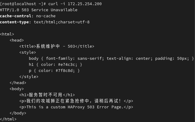 lo(回环接口) 上的 VIP (172.25.254.250),并恢复ARP响应。如果不删,HAProxy 转发请求过去时,RS 可能会因为 IP 冲突或路由混乱导致连接失败。