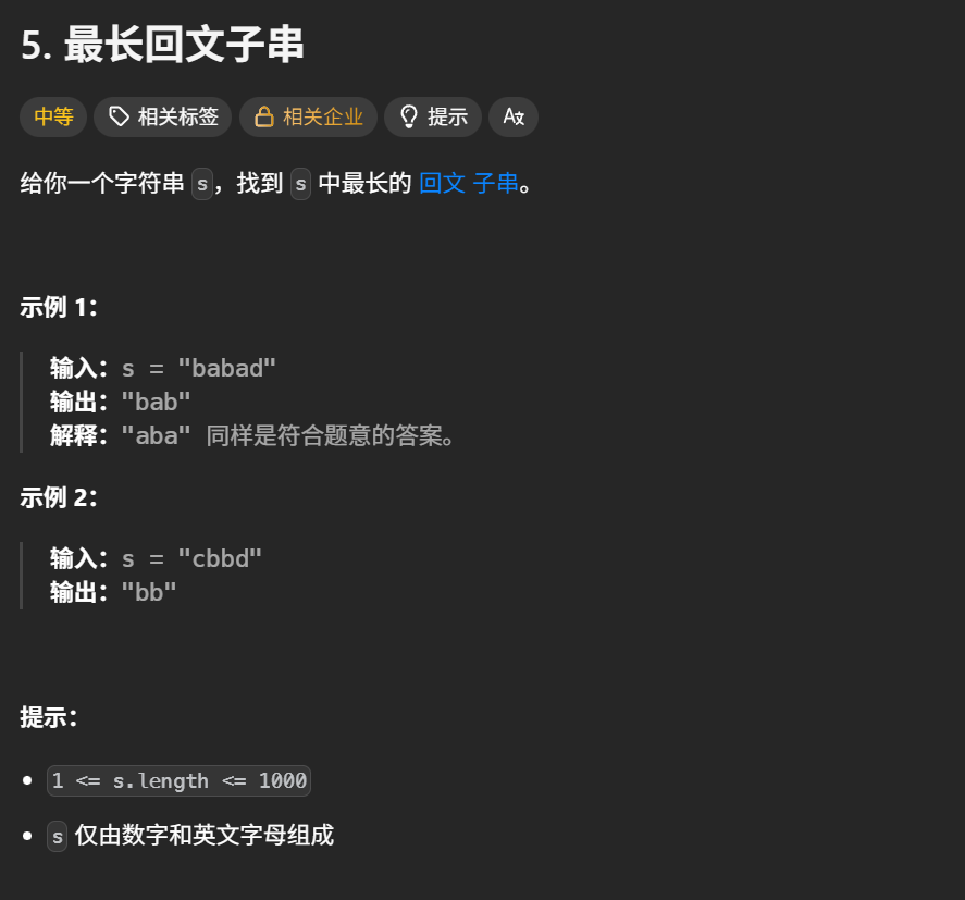 最长回文子串是一道面试算法常考题,也是我们算法练习中必不可少的一道题目