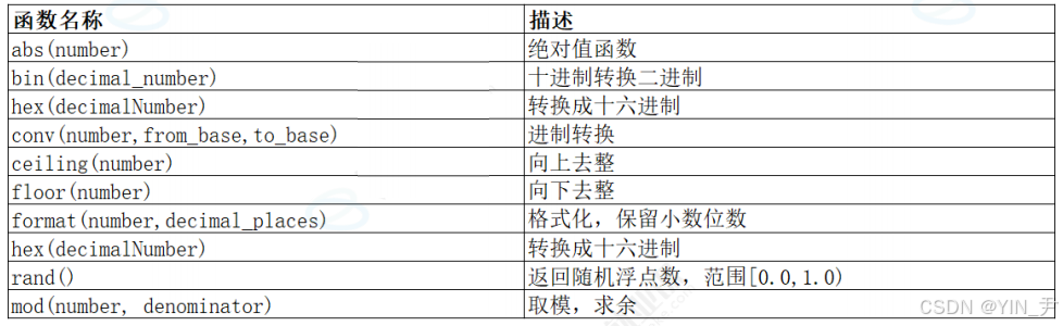 - [1. 数学函数](#1. 数学函数)