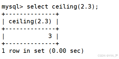 select ceiling(2.3);