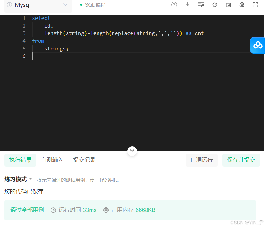 length(string)-length(replace(string,',','')) as cnt