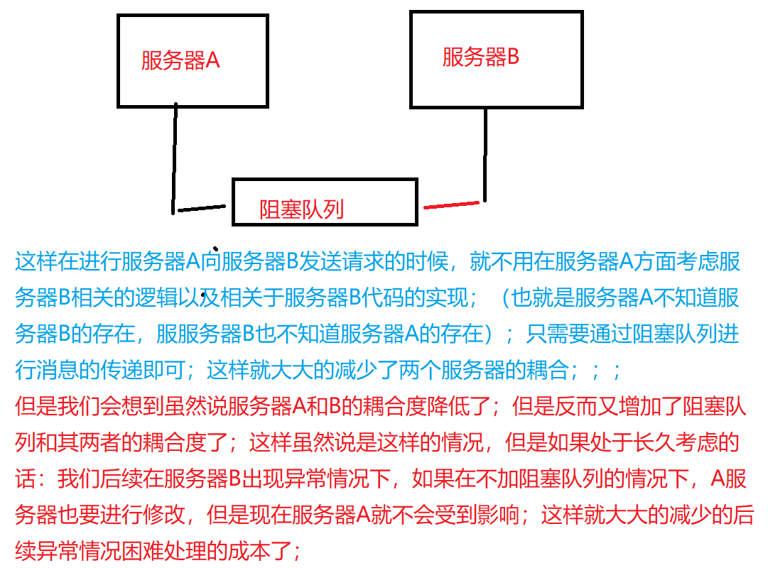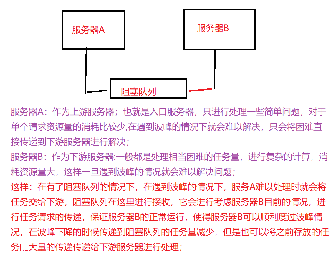 在一些情况下,阻塞队列很重要,有时会把阻塞队列单独部署成一个服务器:称为"消息队列"(包含多个阻塞队列);