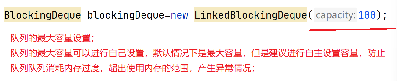 BlockingDeque<Integer> blockingDeque=new LinkedBlockingDeque<>(20);