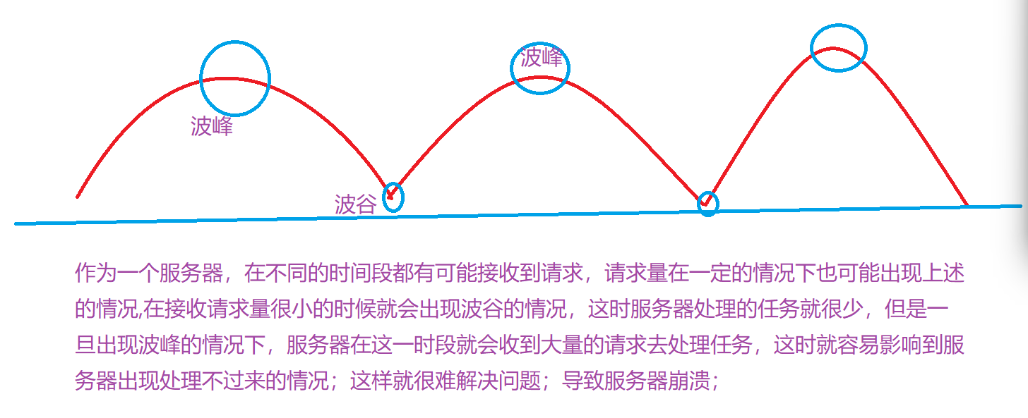 在上述的情况下,我们就会考虑到如何缓冲波峰的压力呢,如果可以解决波峰的压力,这样就可以解决问题;于是,我们在这样的背景下:就提出了关与阻塞队列的引用来实现生产者消费模型;