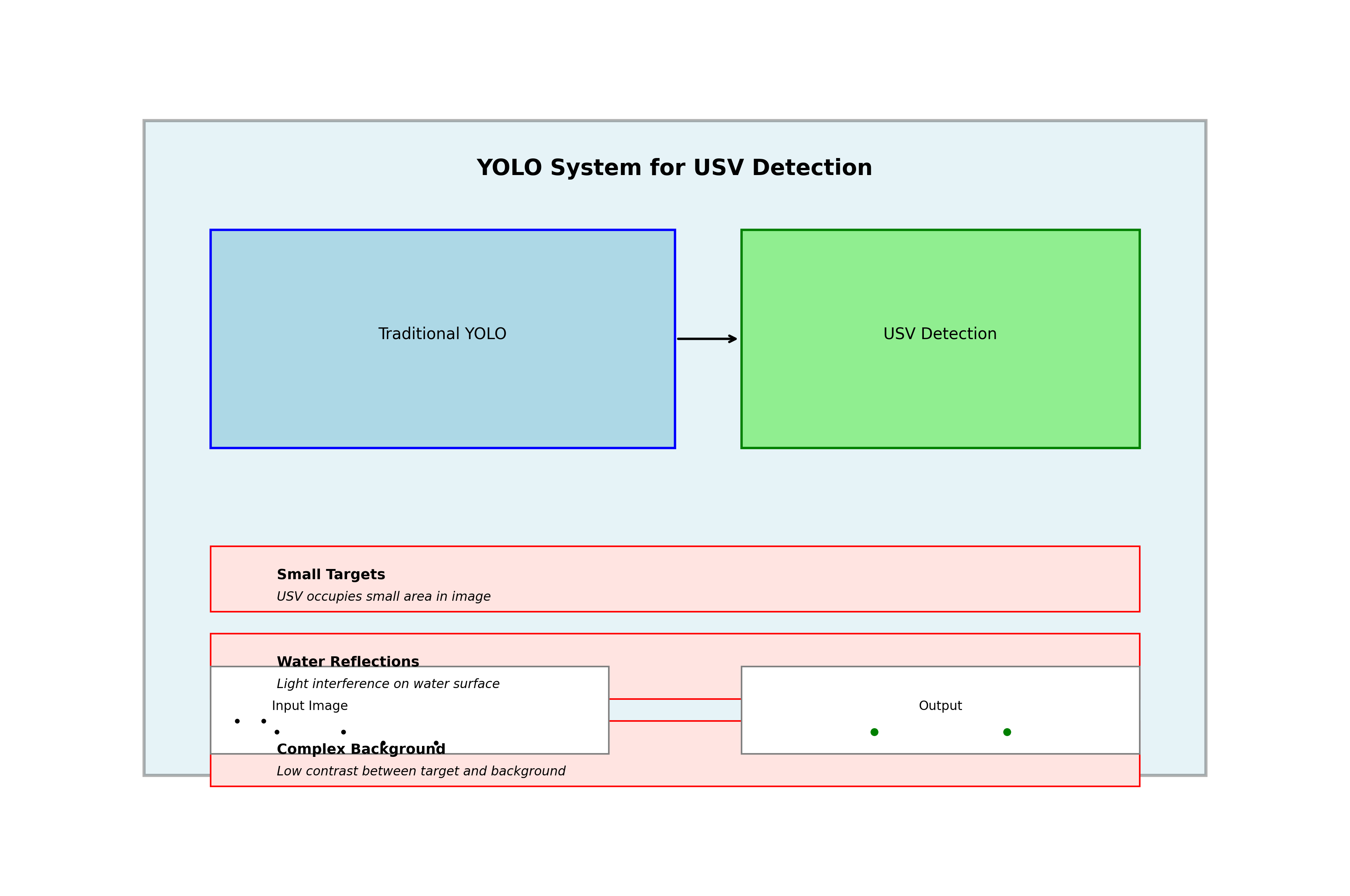 上图展示了USV检测面临的主要挑战,包括小目标、复杂背景和遮挡情况。这些因素共同导致了现有检测算法在USV任务上的性能下降。