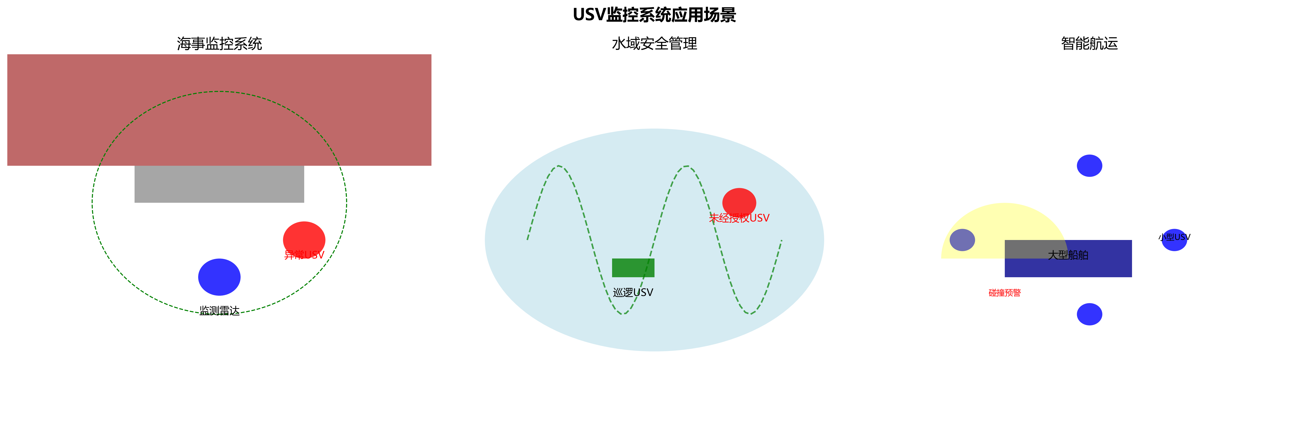 - 海事监控系统:用于港口和海岸线的USV监测,及时发现异常USV活动。