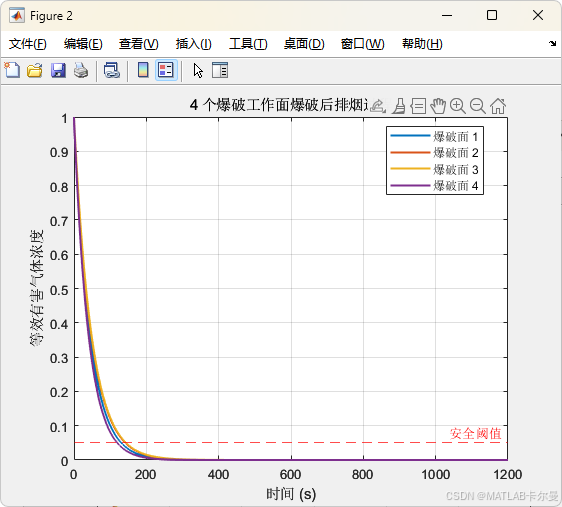 - 图形输出:各工作面浓度随时间的衰减曲线,直观显示排烟过程