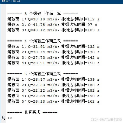 - 数值输出:每个爆破面的分配风量和排烟达标时间