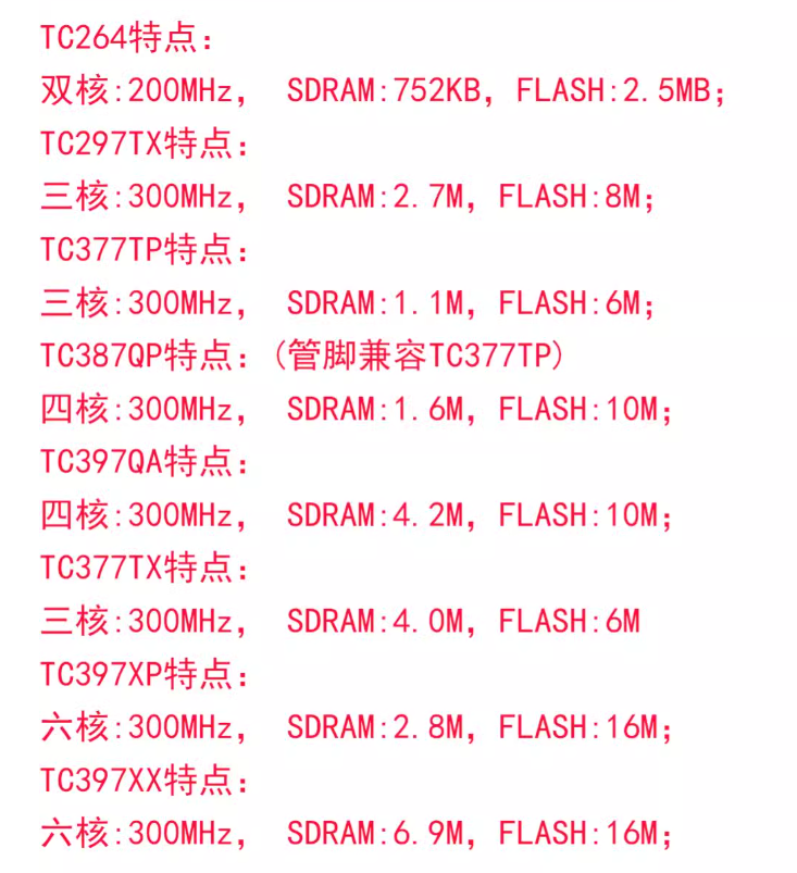 TC297MCU 的主频和 TC377 相同, SDRAM 和 FLASH 都要优于 TC377MCU。