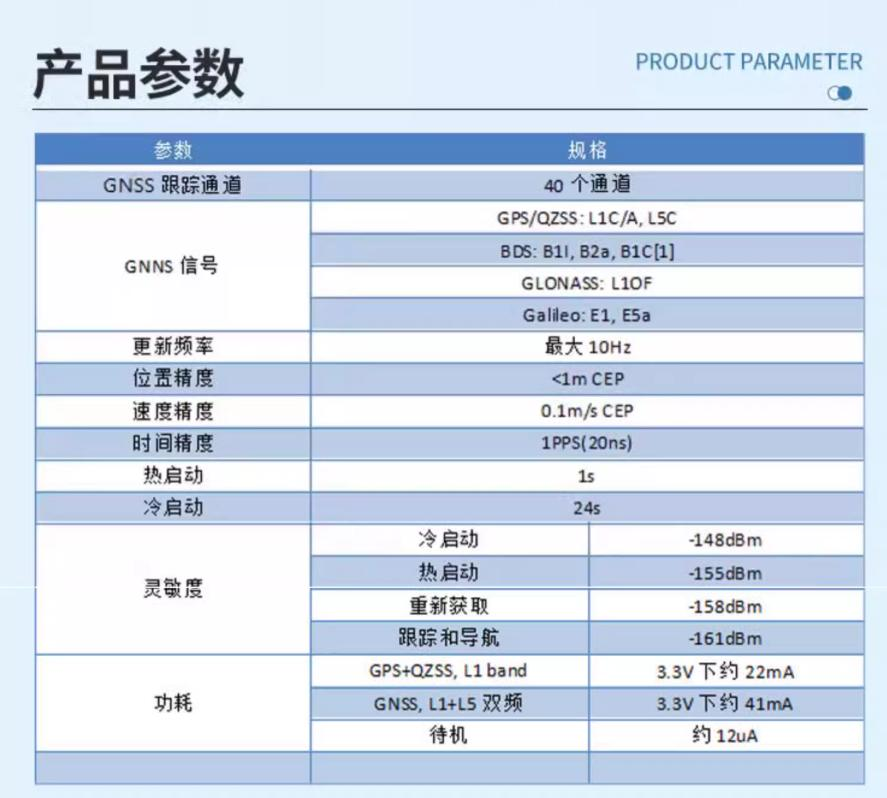 等。 支持所有民用 GNSS 系统;支持 BDS-3 信号: B1C、 B2A;可同时接收 L1 和 L5 波段信号,