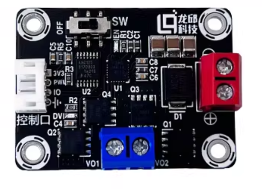 该驱动采用门极驱动芯片 DRV8701E + N-MOS 管 TPH1R403NL 方案,无需升压电路,输入电源 5.9V ~ 28V 均可使用,带过流保护功能。