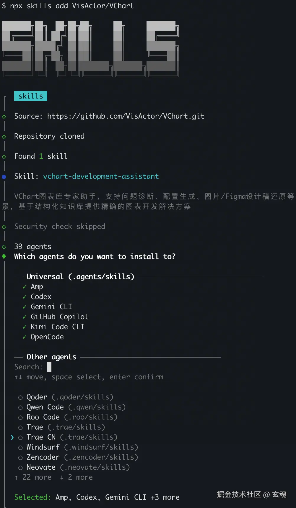 VChart 开发 Skill 已发布至 GitHub(欢迎star: github.com/VisActor/VC...):github.com/VisActor/VC...,可以手动添加也可以可通过