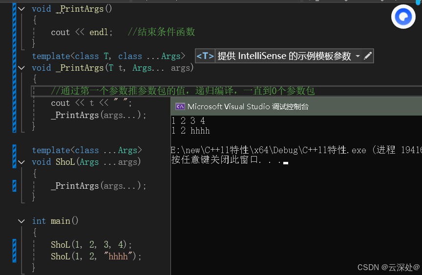 可变参数模板:创建接收可变参数的函数模板和类模板