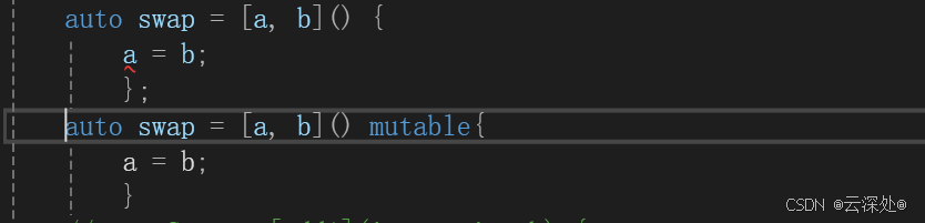 mutable:默认情况下,lambda函数是const函数,使用该关键字取消常量性
