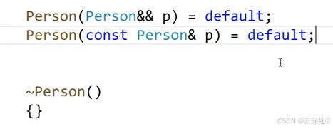 - 当实现了析构函数等时,为了使用编译器默认的移动构造,需要使用default关键字