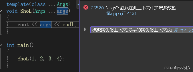 - 我们可以观察到,要使用这个模板需要将参数包扩展