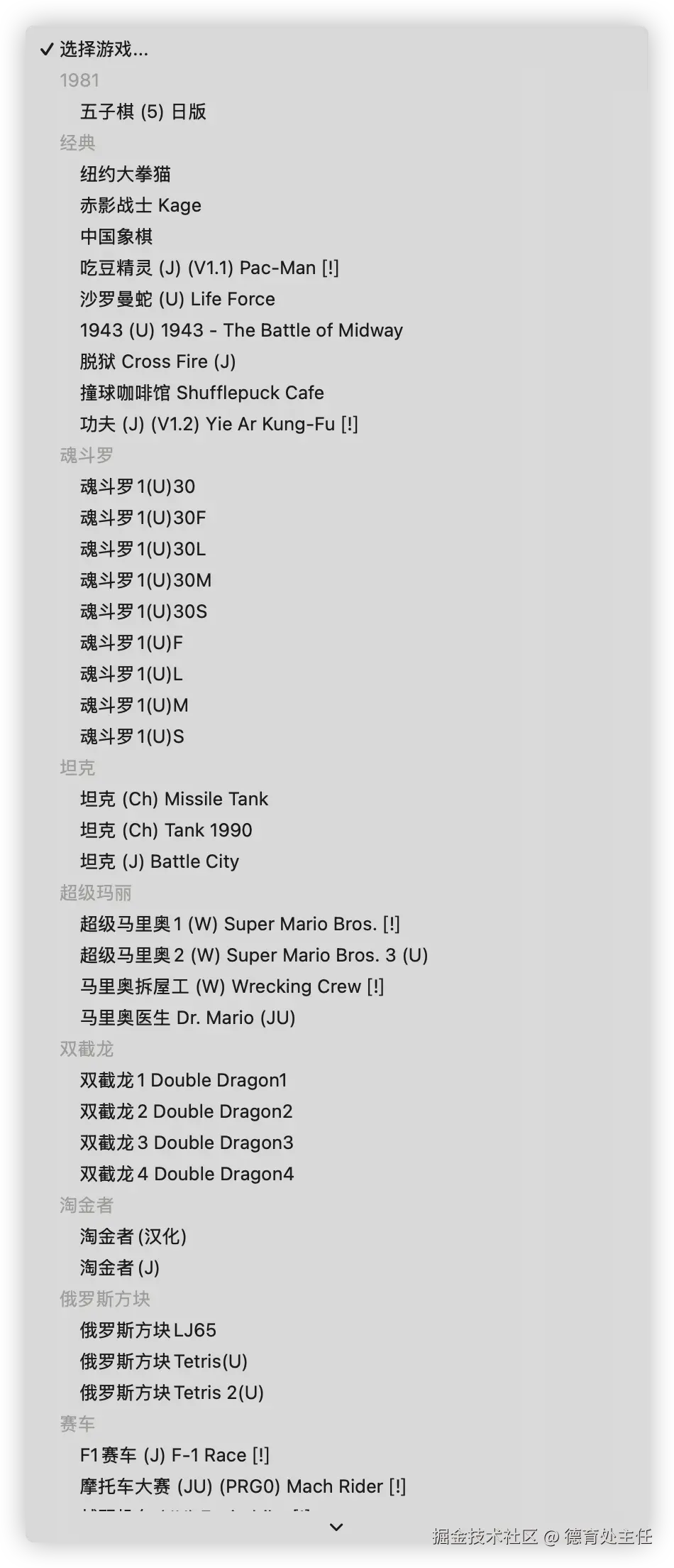 除了马里奥和魂斗罗之外,还有淘金者、功夫、坦克大战等众多经典游戏。